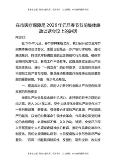 在市医疗保障局2026年元旦春节节前集体廉政谈话会议上的讲话.docx