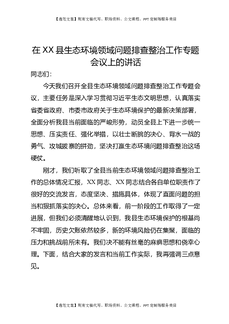 在XX县生态环境领域问题排查整治工作专题会议上的讲话.docx