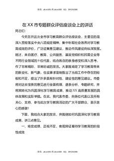 在XX市专题群众评估座谈会上的讲话.docx