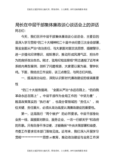 局长在中层干部集体廉政谈心谈话会上的讲话.docx