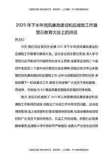 2025年下半年党风廉政建设暨警示教育大会上的讲话.docx