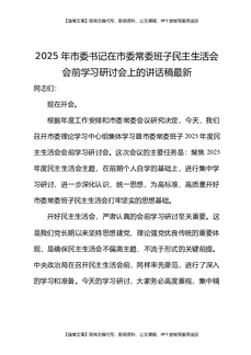 2025年市委书记在市委常委班子民主生活会会前学习研讨会上的讲话稿最新.docx