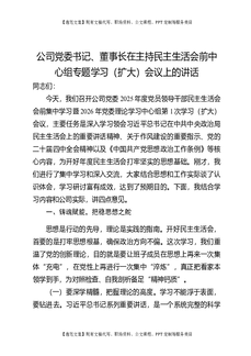 公司党委书记、董事长在主持民主生活会前中心组专题学习(扩大)会议上的讲话.docx