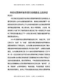 市优化营商环境专项行动调度会上的讲话.docx