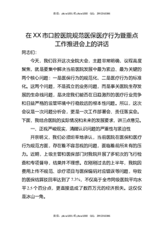 在XX市口腔医院规范医保医疗行为暨重点工作推进会上的讲话.docx
