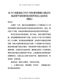 在XX市委党校2025年秋季学期第六期乡科级正职干部任职培训班开班式上的讲话(精品).docx