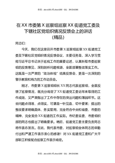 在XX市委第X巡察组巡察XX街道党工委及下辖社区党组织情况反馈会上的讲话(精品).docx