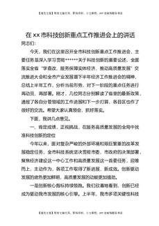 在XX市科技创新重点工作推进会上的讲话.docx