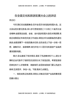 在全县文化和旅游发展大会上的讲话稿领导讲话.docx