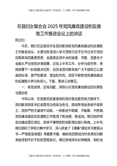 在县妇女联合会2025年党风廉政建设和反腐败工作推进会议上的讲话.docx
