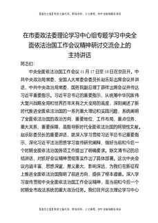 在市委政法委中心组专题学习中央全面依法治国工作会议精神研讨交流会上的主持讲话.docx