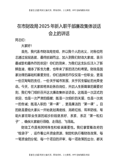 在市财政局2025年新入职干部廉政集体谈话会上的讲话.docx