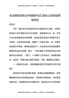 在全县规范性文件检查评议汇报会上的讲话领导讲话.docx