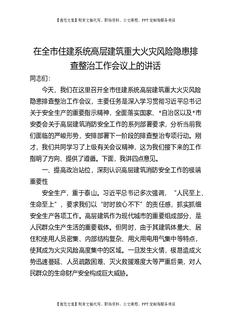 在全市住建系统高层建筑重大火灾风险隐患排查整治工作会议上的讲话.docx