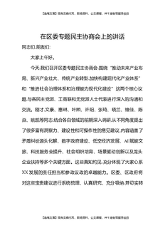 在区委专题民主协商会上的讲话稿领导讲话.docx