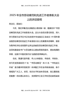 2025年全市劳动模范和先进工作者表彰大会上的讲话提纲.docx