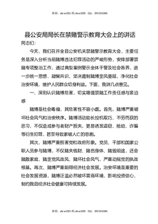 县公安局局长在禁赌警示教育大会上的讲话.docx