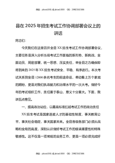 县在2025年招生考试工作协调部署会议上的讲话.docx
