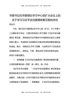 市委书记在市委理论学习中心组扩大会议上的关于学习习近平谈治国理政第五卷的讲话.docx