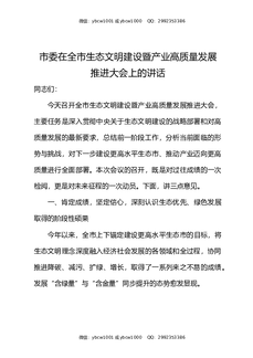 市委在全市生态文明建设暨产业高质量发展推进大会上的讲话.docx