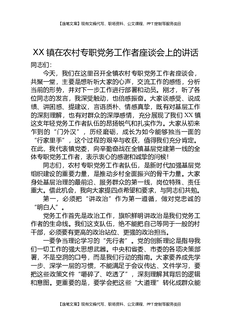XX镇在农村专职党务工作者座谈会上的讲话.docx