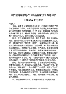 评估督导组领导在XX县四家班子专题评估工作会议上的讲话.docx