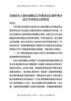 全县农村人居环境整治工作推进会议暨冬季决战工作动员会上的讲话.docx