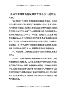 全县卫生健康暨党风廉政工作会议上的讲话.docx
