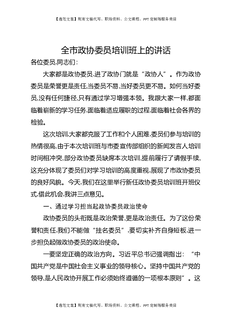 全市政协委员培训班上的讲话.docx