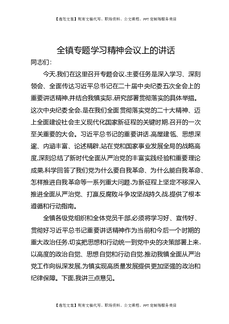 全镇专题学习精神会议上的讲话.docx