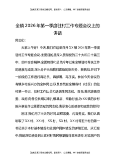 全镇2026年第一季度驻村工作专题会议上的讲话.docx