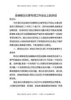 全镇根治欠薪专项工作会议上的讲话.docx
