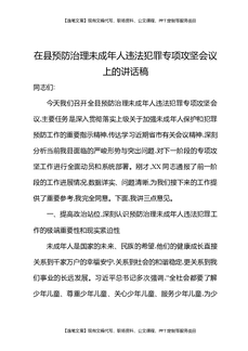 在县预防治理未成年人违法犯罪专项攻坚会议上的讲话稿.docx