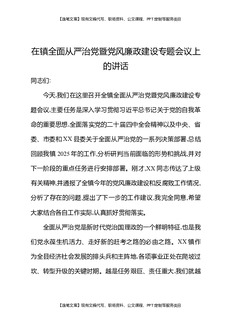 在镇全面从严治党暨党风廉政建设专题会议上的讲话.docx