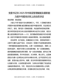 党委书记在2025年中高层管理赋能及履职能力提升专题培训班上的动员讲话.docx