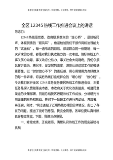 全区12345热线工作推进会议上的讲话.docx