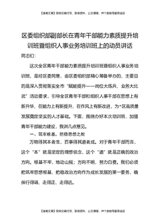 区委组织部副部长在青年干部能力素质提升培训班暨组织人事业务培训班上的动员讲话.docx