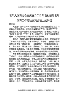 老年人体育协会主席在2025年农村基层老年体育工作经验交流会议上的讲话.docx