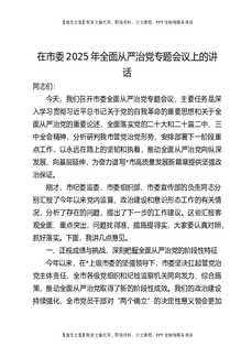 在市委2025年全面从严治党专题会议上的讲话.docx