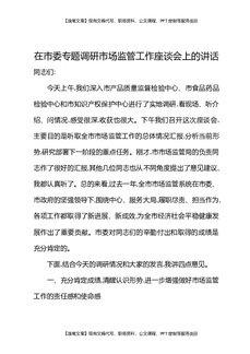在市委专题调研市场监管工作座谈会上的讲话.docx