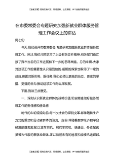 在市委常委会专题研究新就业群体服务管理工作会议上的讲话.docx