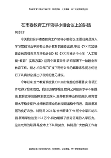 在市委教育工作领导小组会议上的讲话稿领导讲话.docx