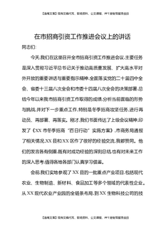 在市招商引资工作推进会议上的讲话稿领导讲话范文.docx