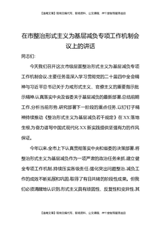 在市整治形式主义为基层减负专项工作机制会议上的讲话.docx