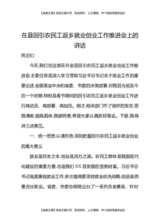 在县回引农民工返乡就业创业工作推进会上的讲话.docx