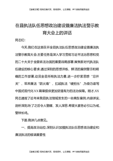 在县执法队伍思想政治建设暨廉洁执法警示教育大会上的讲话.docx