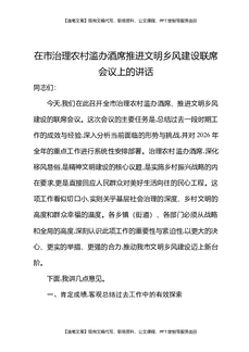 在市治理农村滥办酒席推进文明乡风建设联席会议上的讲话.docx