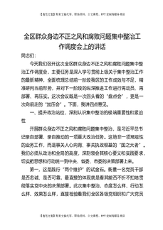 全区群众身边不正之风和腐败问题集中整治工作调度会上的讲话.docx