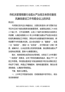 市机关管理局履行全面从严治党主体责任暨党风廉政建设工作专题会议上的讲话.docx