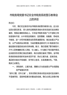 市税务局党委书记在全市税务系统警示教育会上的讲话.docx